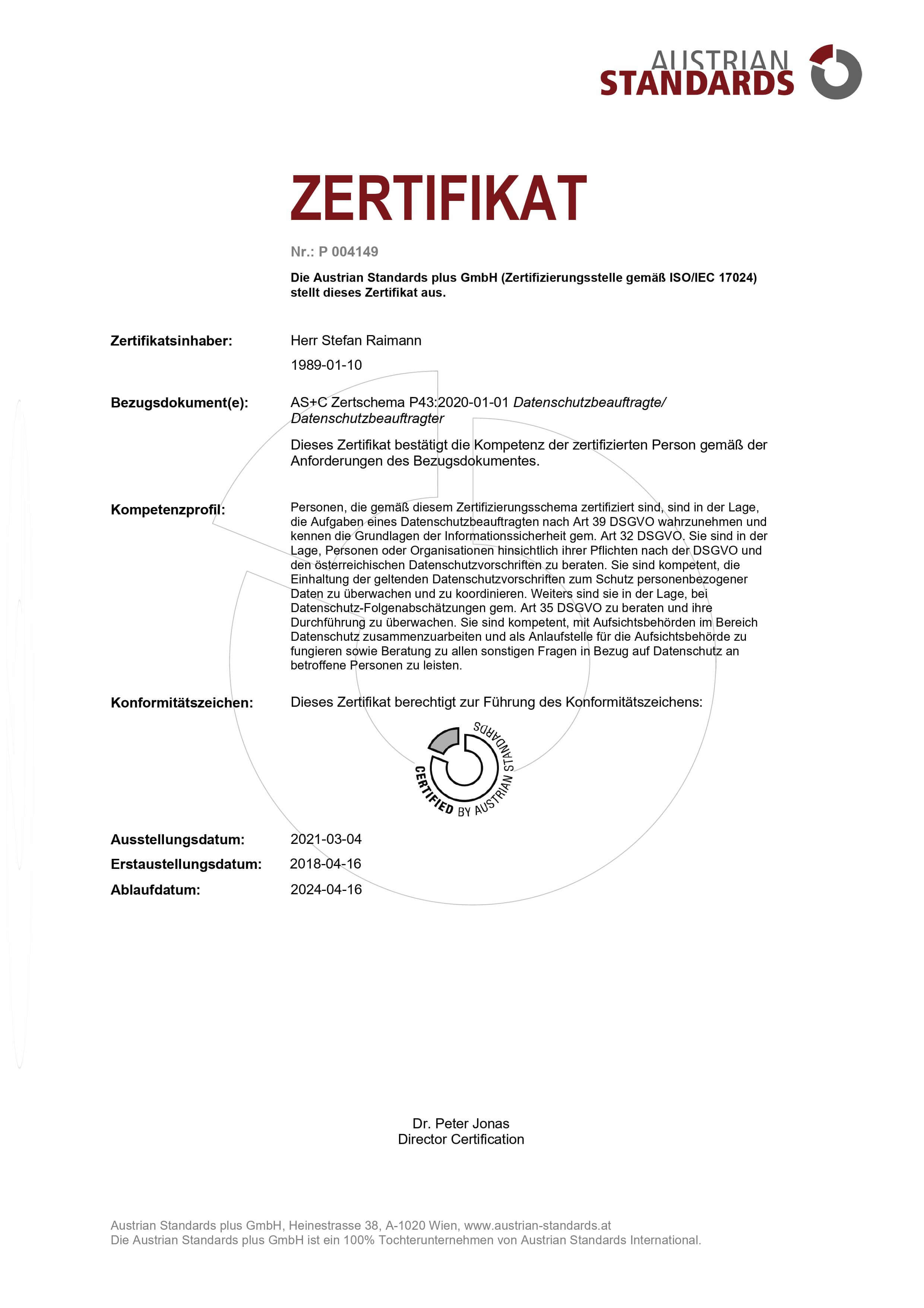 We work according to the highest data protection and security standards. To ensure that your company and your customers' data is protected in the best possible way, we have had our leading employees certified as data protection officers by Austrian Standards.